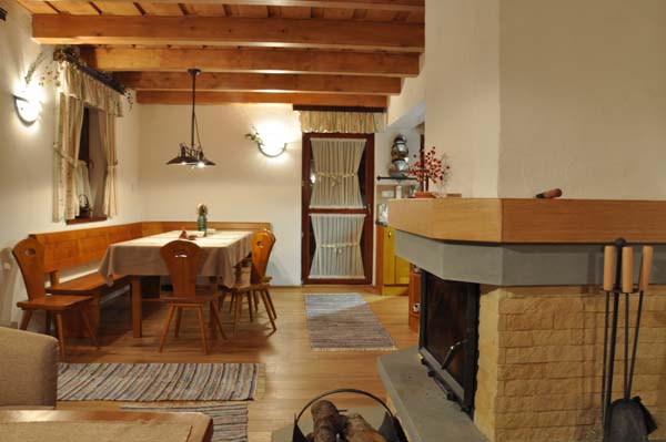 Útulný, ale prostorný obývací pokoj s televizí, DVD přehrávačem a satelitními programy. Větší terasa s bytelným stolem (z obou teras je nádherný výhled na hory a lesy v okolí)